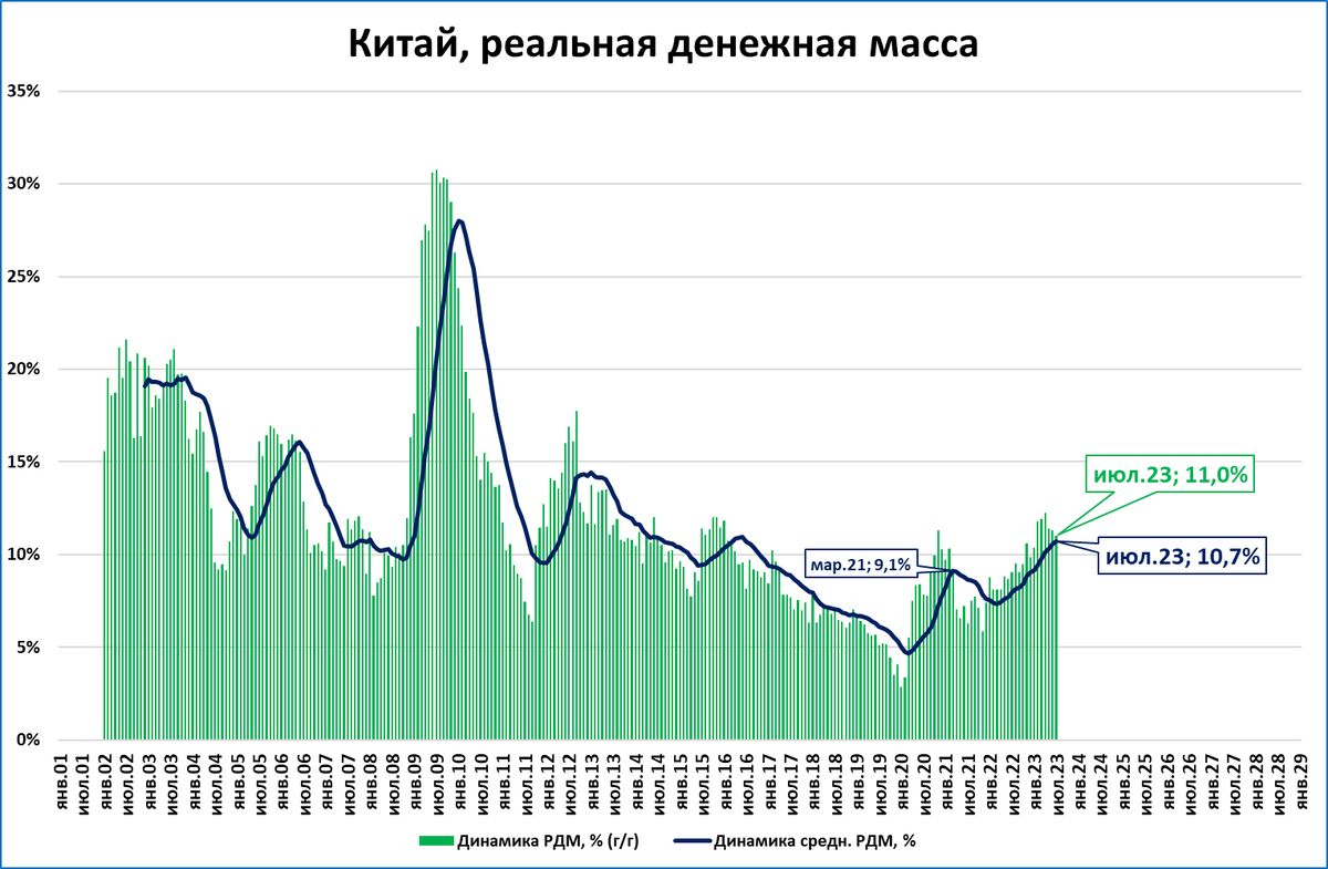 Говоря иначе, выполнению планов китайского руководства ничто не угрожает. Но вот рост на 8%+, который ожидали мы (основываясь на рекордном росте РДМ, см. выше), пока под сомнением.