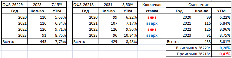 Воспользуемся традиционной стратегией: при снижении ставки покупаем длинные облигации (26218), при росте ставки покупаем короткие облигации (26229).