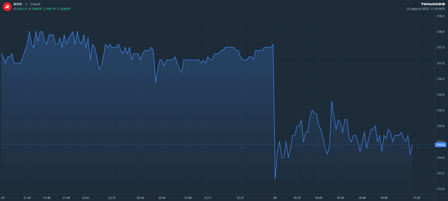 К 11:18 по мск MVID торгуются по цене 214,4 руб. за акцию и теряют после отчета 1,56%.