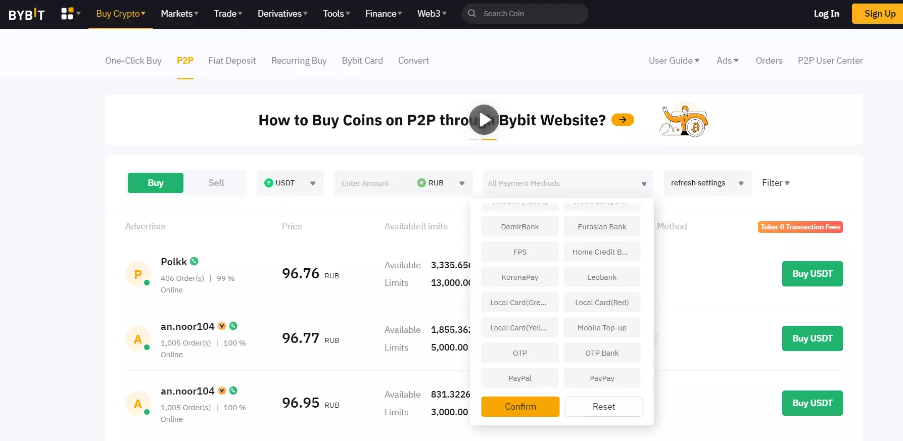 Изменения коснулись обмена на P2P-платформе. В сервисе можно заметить «зеленую карту» Сбербанка, «желтую карту» Тинькофф Банка и «красную» карту Альфа-банка.