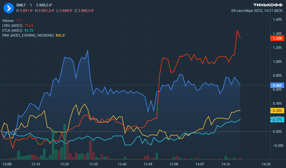 Торгующиеся на бирже застройщики сегодня в плюсе. Наибольшим движением после публикации новостей о господдержке отличились бумаги ЛСР и Самолета. Кстати, у аналитиков Тинькофф Инвестиций открыта идея на покупку бумаг Самолета с целевой ценой 4400 руб. за бумагу на горизонте года.