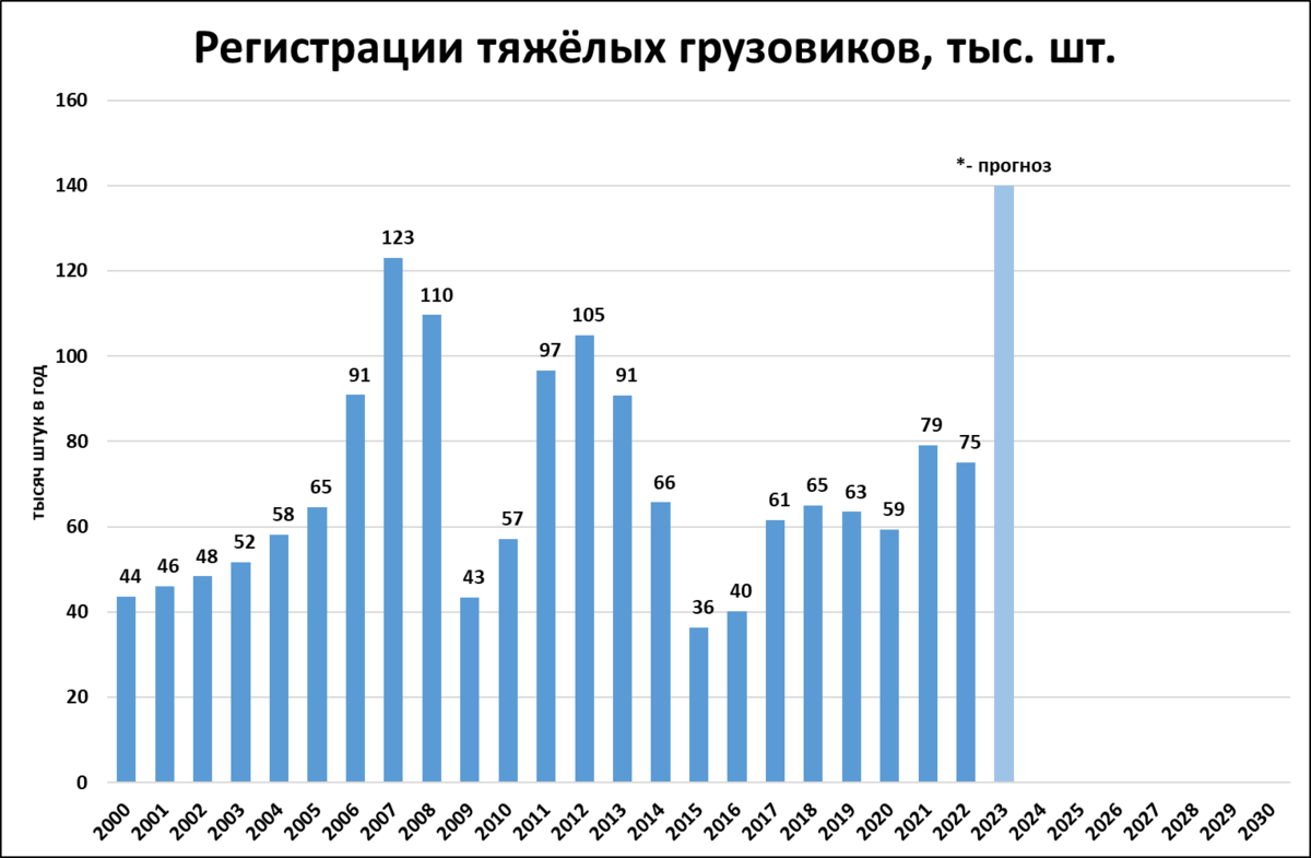 Простое продление тренда даёт 155 тысяч единиц по итогам года.