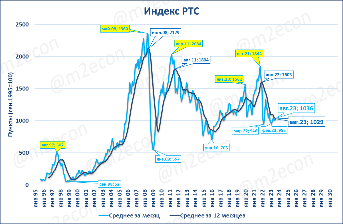 * Большинство биржевых показателей (индексы, курсы валют) за месяц считаются по формуле HLC/3 (среднее цен максимальных, минимальных и закрытия).