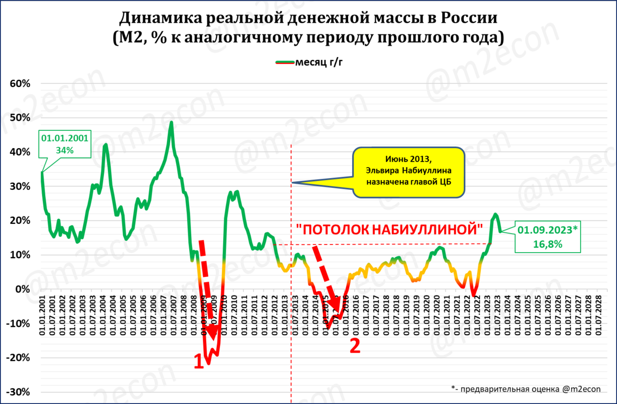 Реальная денежная масса замедлила свой рост до +17% годовых (с 20% годовых месяцем ранее).