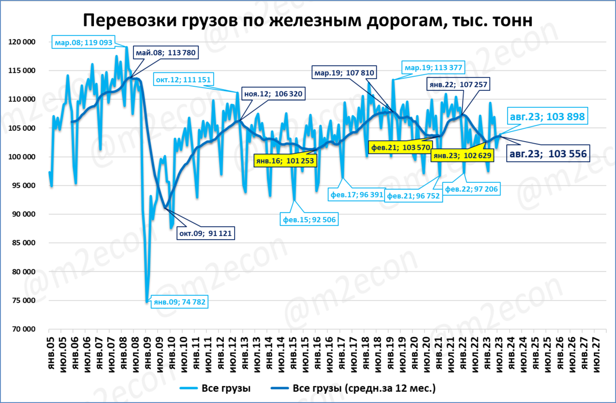 Одно из возможных объяснений – переход всё большей части грузов на автомобильный транспорт. Косвенно это подтверждается бурным ростом рынка грузовиков.