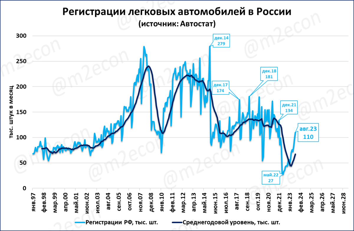 Всего за последние 12 месяцев (скользящий год) было продано 803 тысячи легковых автомобилей.