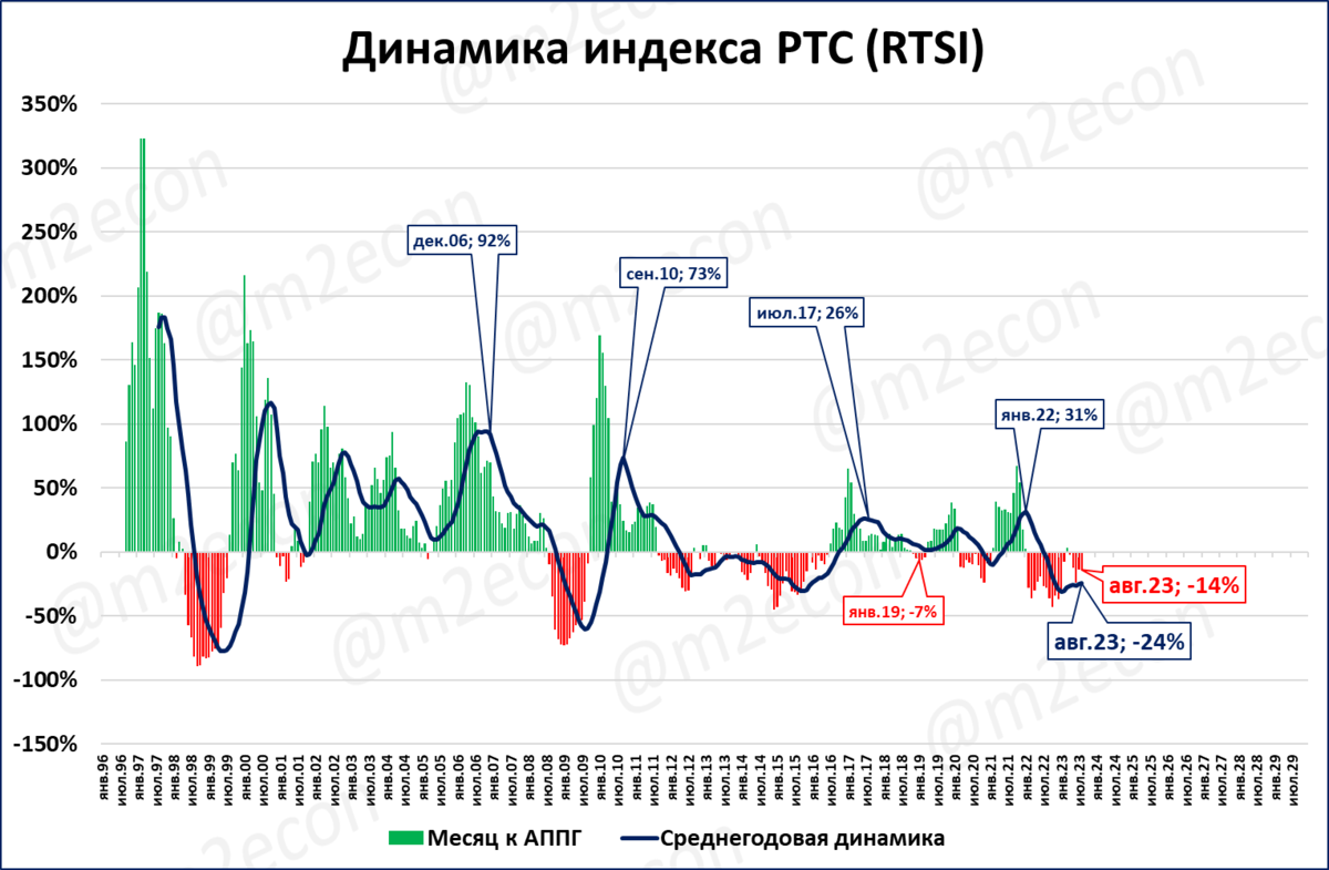 Индекс РТС: -14% годовых