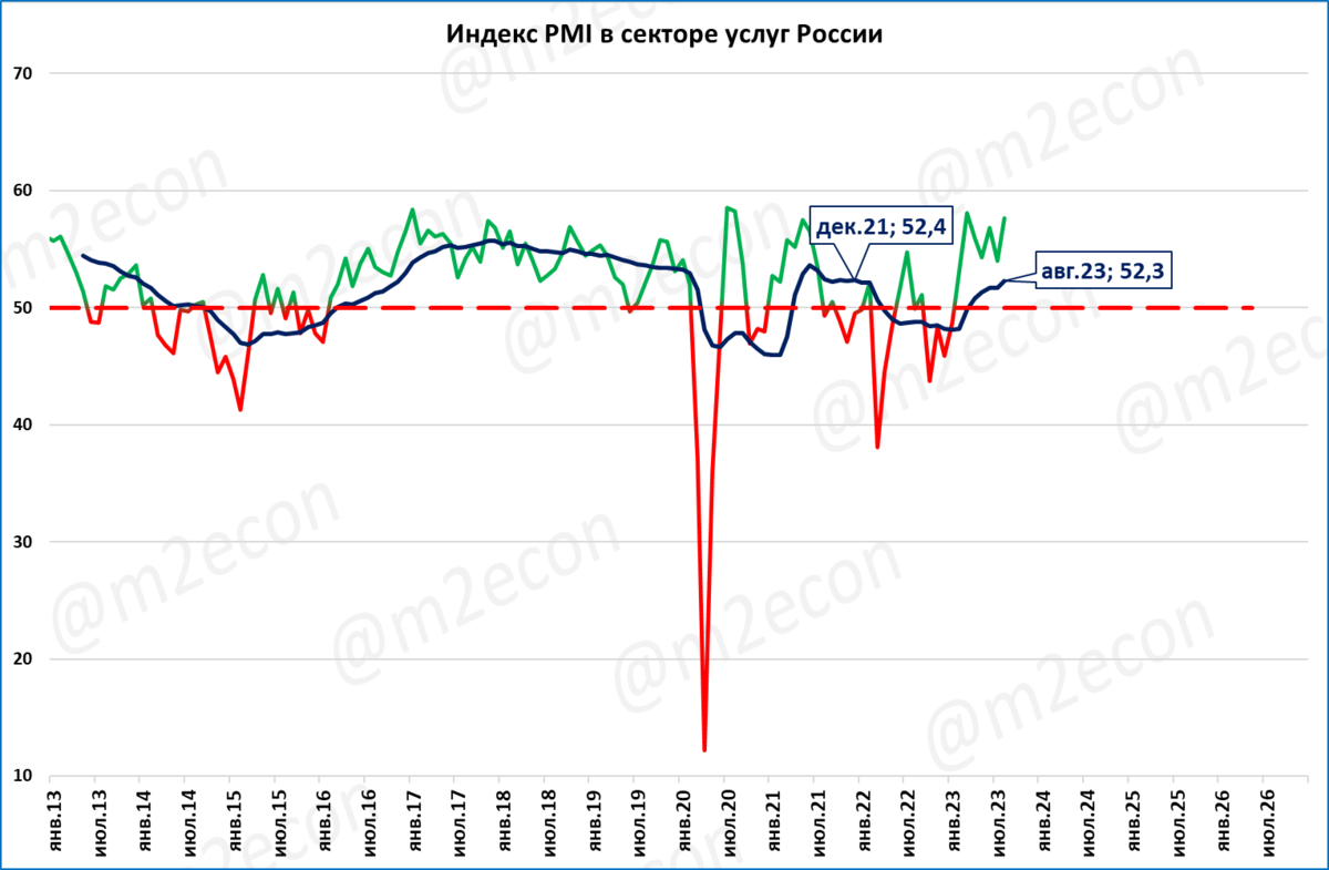 Мы прогнозируем, что рост деловой активности в услугах продолжится и значения 2021 года будут по итогам года значительно превышены.