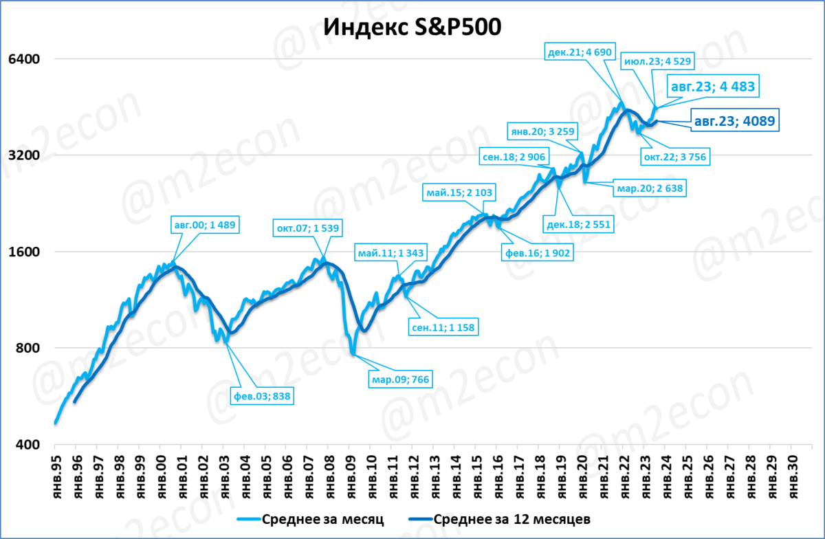 В августе среднее значение индекса S&P500 составило 4483 пункта.
