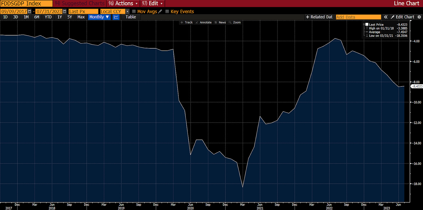Последнее значение - ошеломляющие 8% от номинального ВВП.