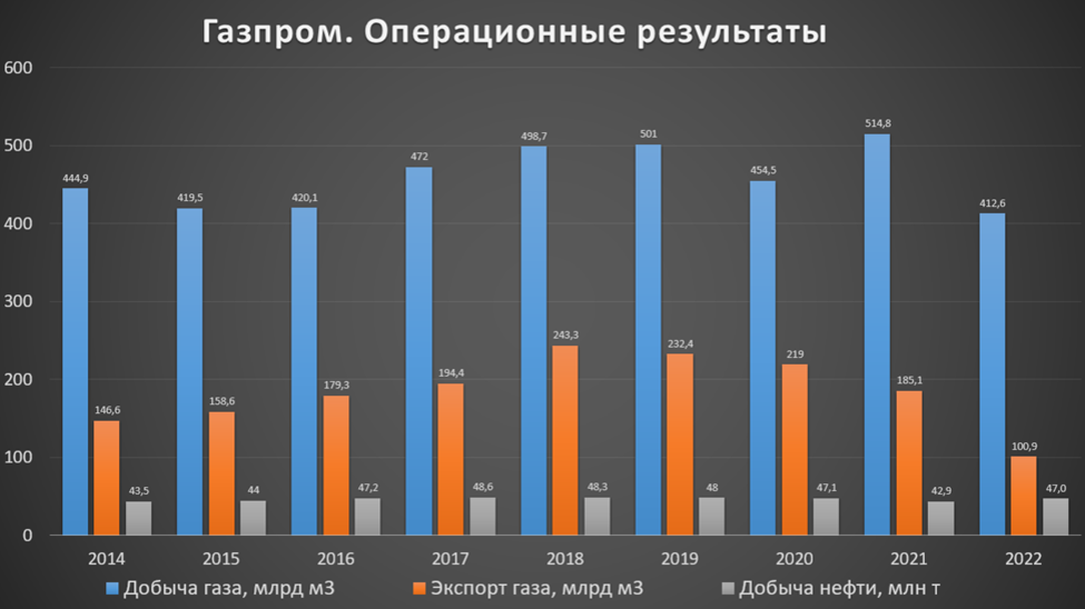 Газпром сильно пострадал от текущей геополитической ситуации. В 2022 году спрос со стороны стран Европы снизился на 55 млрд кубических метров. Т.е. примерно на треть. В результате диверсий на Северных потоках, санкций и ограничений Газпром теряет ключевой рынок сбыта.
