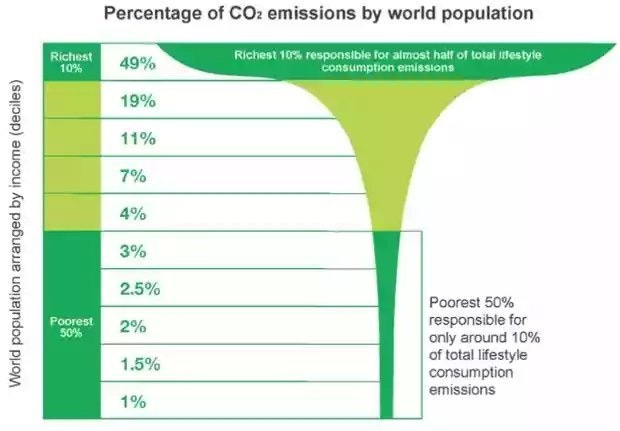 Доля выбросов СО2 по мировой популяции. Беднейшие 50% ответственны за 10% общих выбросов. Oxfam