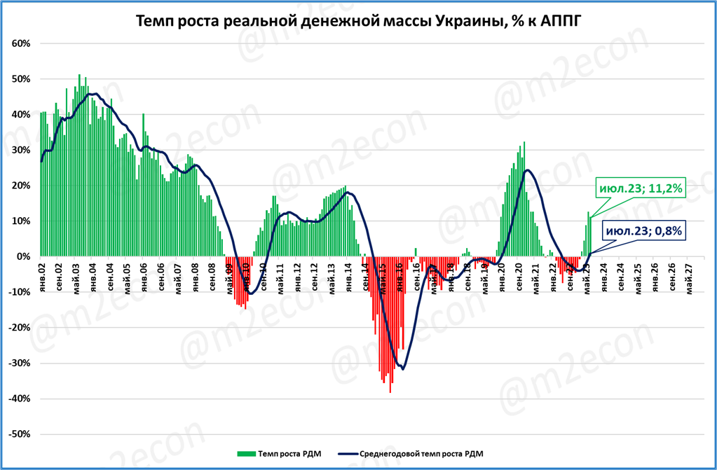 В последние месяцы реальная денежная масса растёт. Это означает, что номинальная денежная масса растёт быстрее цен.