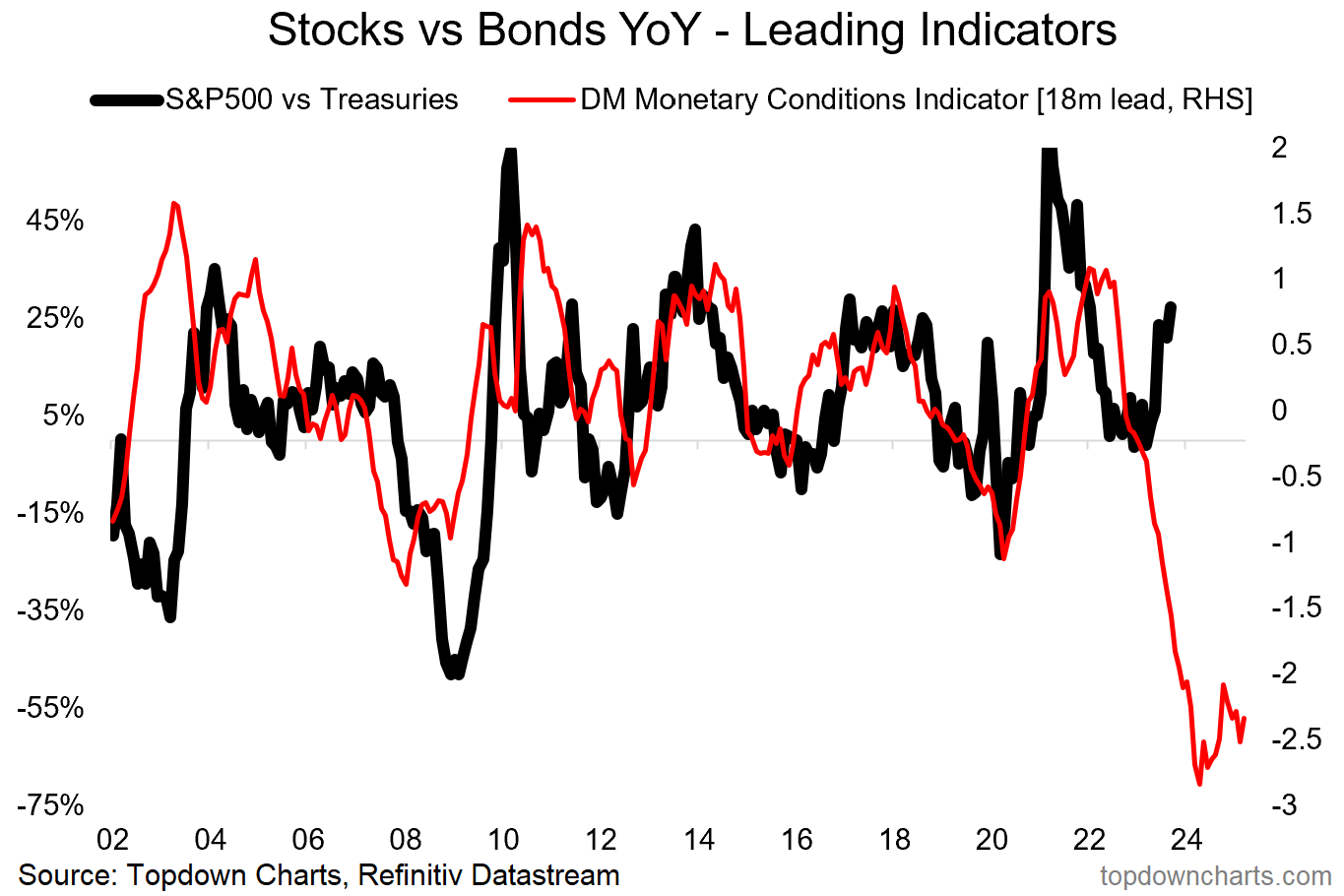 Отношение S&P 500 к облигациям и индикатор монетарных условий