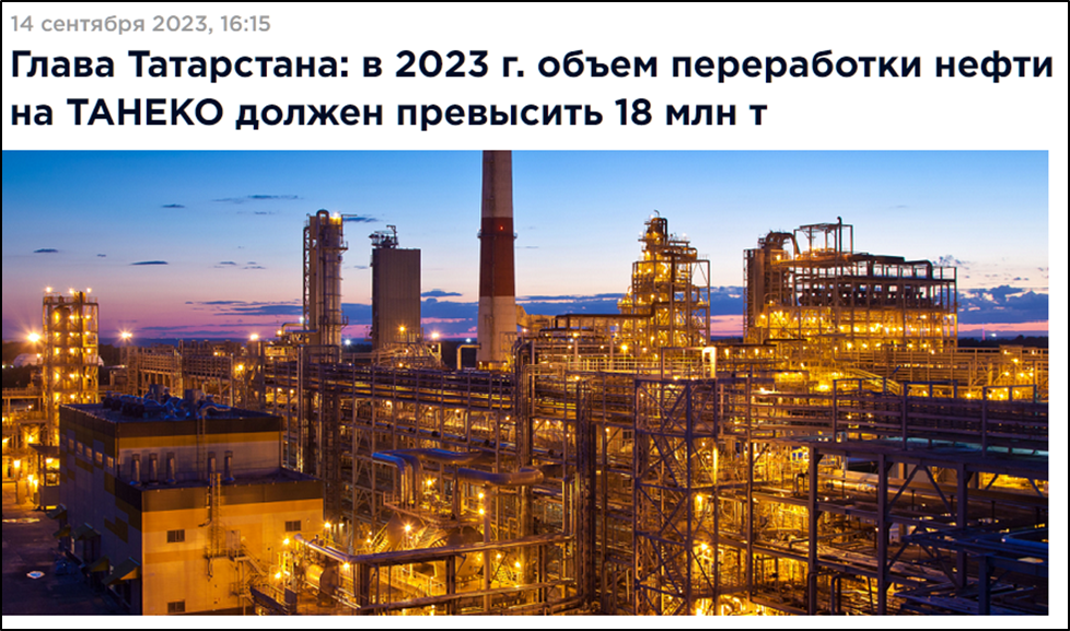 Компания не опубликовала операционных результатов за 1П 2023. Но глава Татарстана Р. Минниханов в середине сентября сообщил, что в 2023 году объем переработки нефти на ТАНЕКО должен превысить 18 млн тонн. Т.е. ожидается рост на 12,5% г/г.
