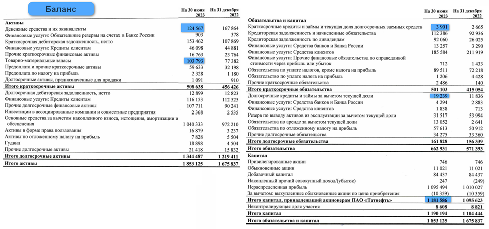 Баланс у компании содержит много строк из-за данных Банковской группы Зенит, но т.к. в масштабах Татнефти это вспомогательный бизнес, не будем обращать на него внимание.