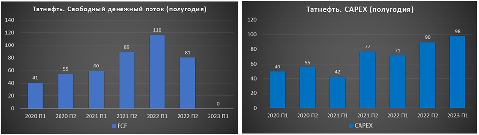 Налоги. С первого сентября снижен дисконт до $20 за баррель при расчете налогов, а также сокращены компенсации нефтяникам за сдерживание цен на бензин. Т.е. топливный демпфер снижен в два раза. Татнефть может потерять от этого около 100 млрд (т.е. более трети от ЧП за 2022г.). В четвертом квартале мы увидим значимый рост налоговой нагрузки. Также 26.09.23 ряд депутатов предложили распространить налог на сверхприбыль на нефтегазовые компании.