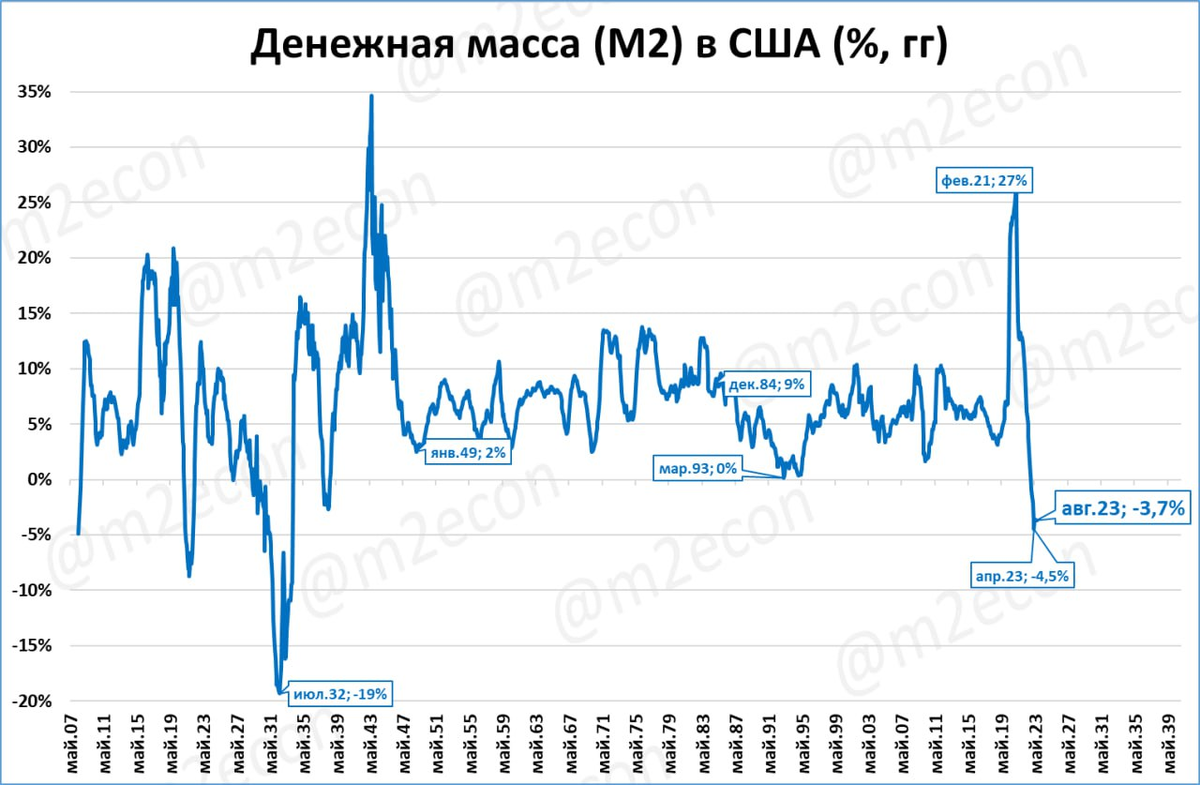Сжатие денежной массы в США, подобное нынешнему, наблюдалось в последний раз в 1930-1934 годах, во время Великой депрессии.