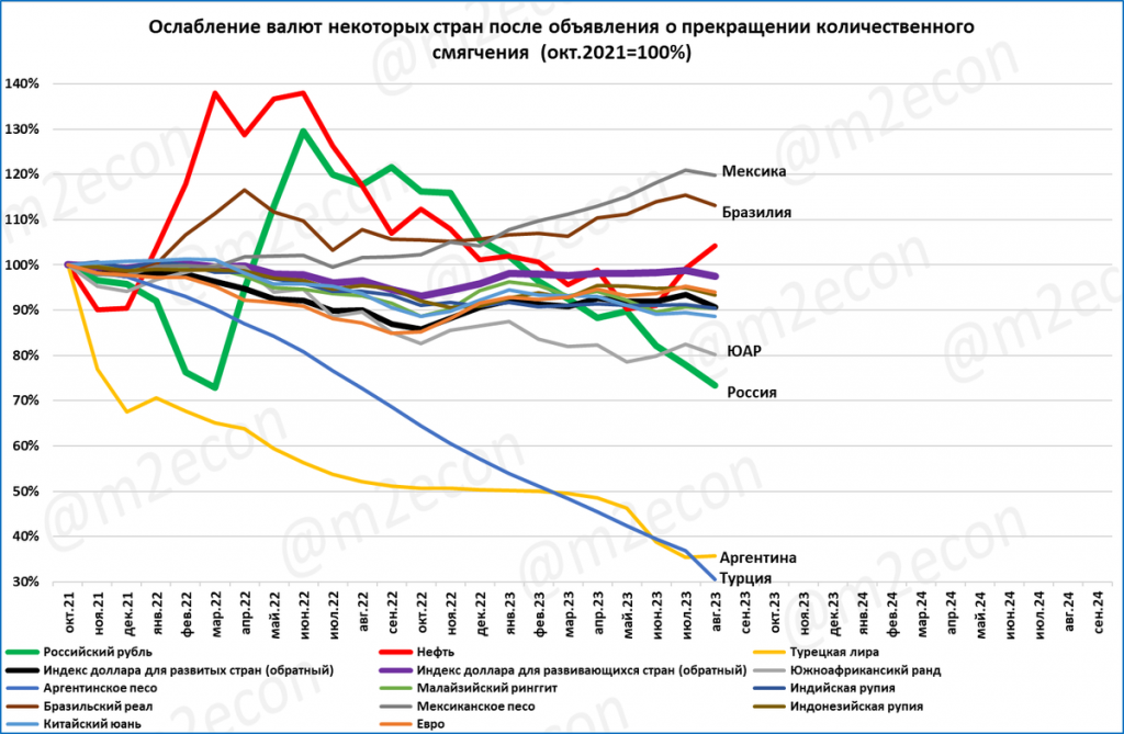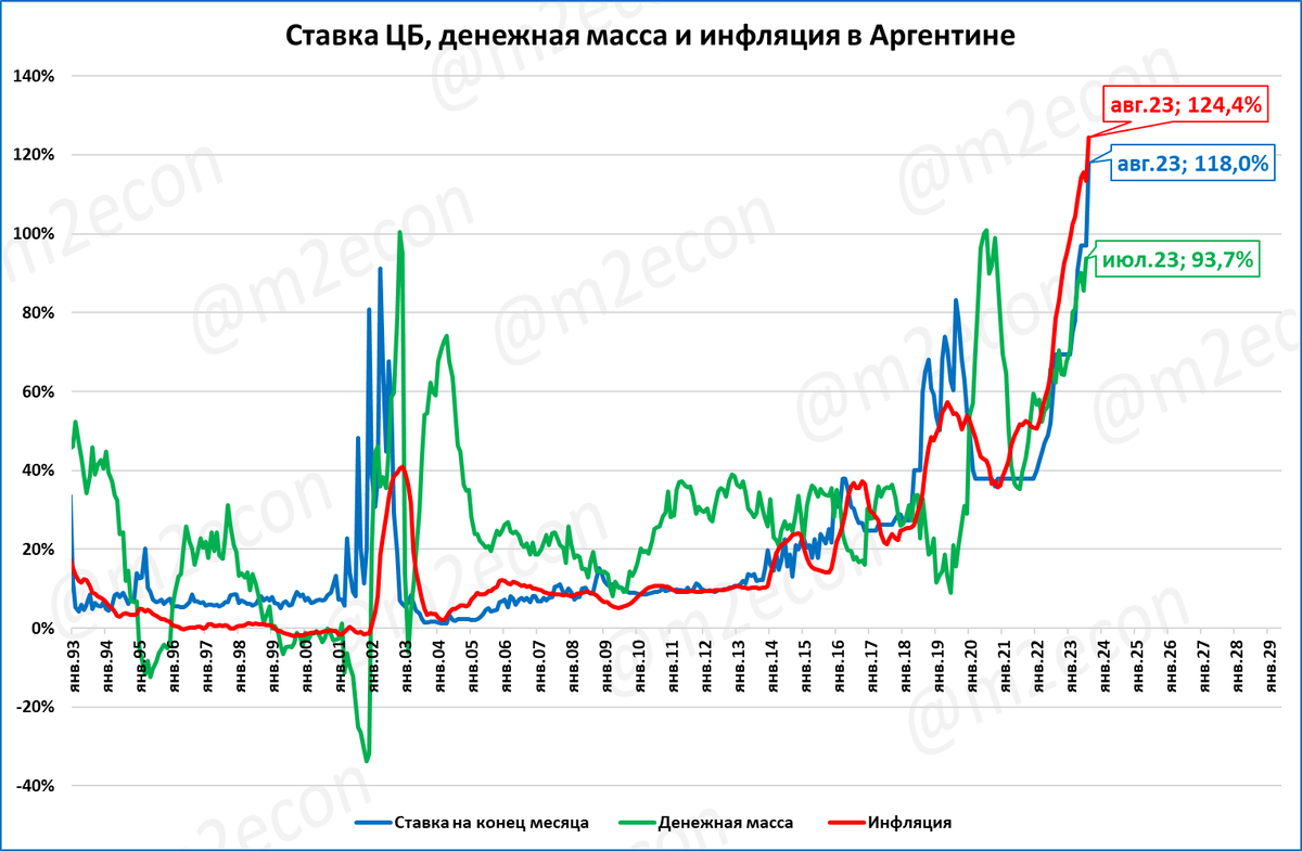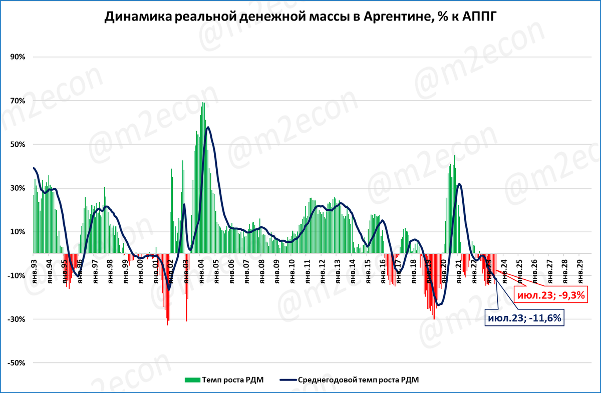 В Аргентине ЦБ сжимает реальную денежную массу, что ведёт к падению ВВП. Аргентинским экономическим властям стоило бы бы повторить «турецкий парадокс», при котором экономика растёт, несмотря на высокую инфляцию и ослабление национальной валюты.