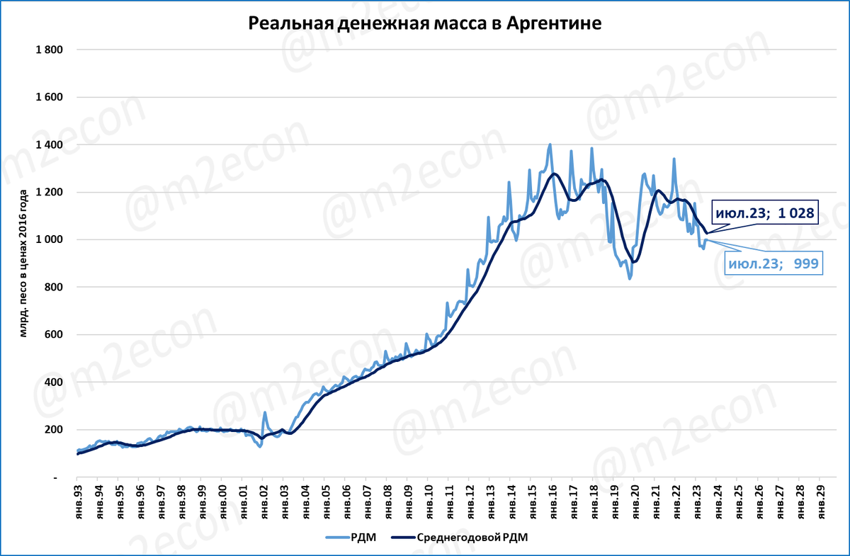 Сейчас реальная денежная масса в Аргентине ниже, чем в 2015 году.
