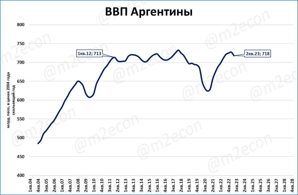 Неудивительно, что и ВВП Аргентины от уровня 2012 года далеко не ушёл.