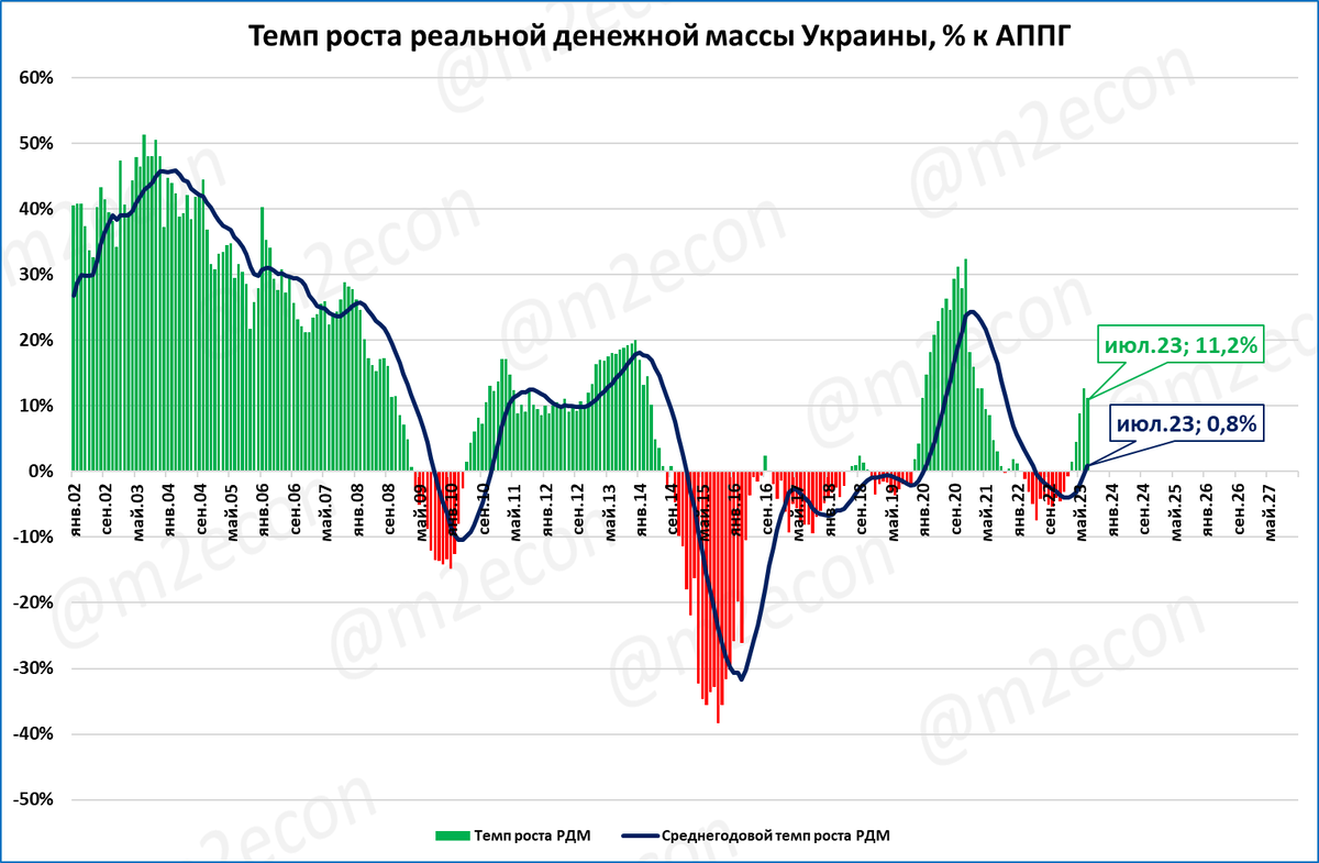 Денежная масса в реальном выражении (=реальная денежная масса; РДМ) сократилась за год на 7,1%.