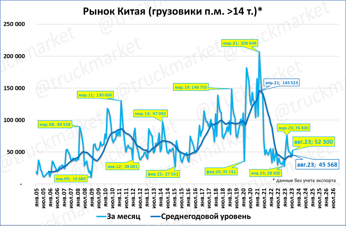 В августе продажи на внутреннем рынке Китая достигли 52,3 тыс. тяжёлых грузовиков.