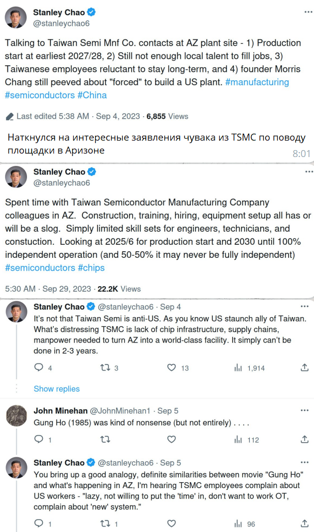 И вообще... сотрудники TSMC говорят, что американцы ленивые и не хотят нормально работать.