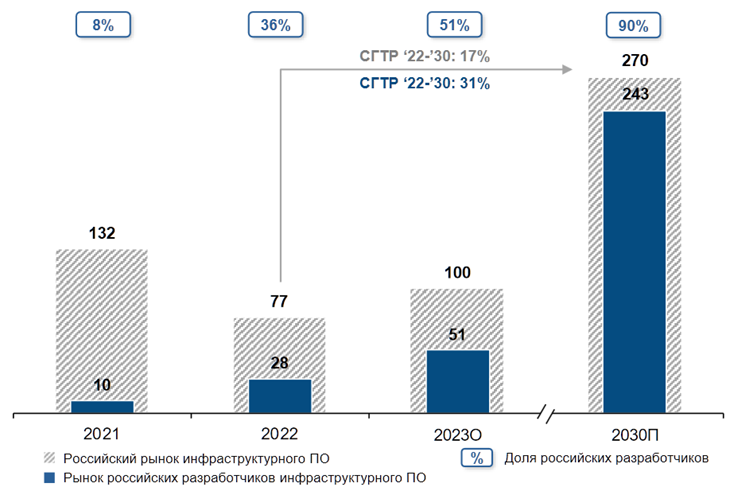 Из-за текущей геополитической ситуации, в РФ возникла острая необходимость в импортозамещении иностранного ПО, в результате чего продукция Астры стала очень востребованной. По данным компании Strategy Partners, у российских разработчиков есть большой потенциал на местном рынке инфраструктурного ПО. Ожидается ежегодный рост продаж на 31%. Целевой рынок на 2030: 270 млрд/год.