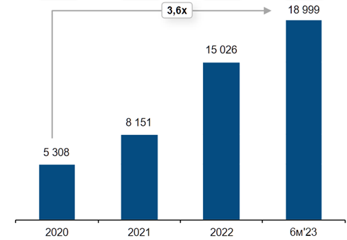 Результаты за 1П 23 впечатляют. Везде кратный рост. Также важно, что у компании сезонный бизнес и на второе полугодие обычно приходится 75% продаж (аналогично Позитиву). Т.е. фактически по итогам года будет ещё более взрывной рост.
