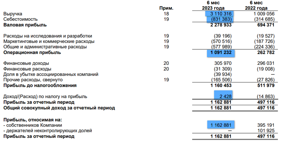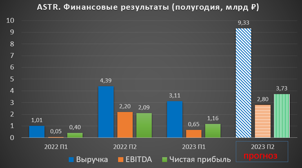 Финансовые результаты Астры за 1П 23 отличные. Кратный рост всех показателей. Из-за сезонности бизнеса, показатели 2П 23 будут еще выше.