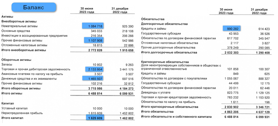 Суммарные кредиты и займы 1 млрд (+60% за полгода).