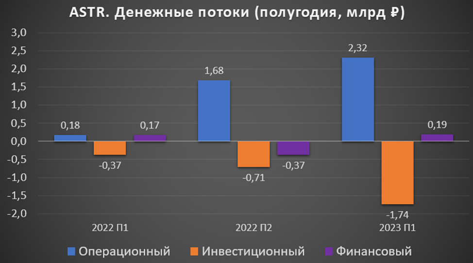 операционная деятельность 2,3 млрд (рост в 11 раз г/г). Именно столько денег поступило в компанию за полгода. Основные драйверы: рост продаж и погашение дебиторской задолженности (клиенты платят по договорам).