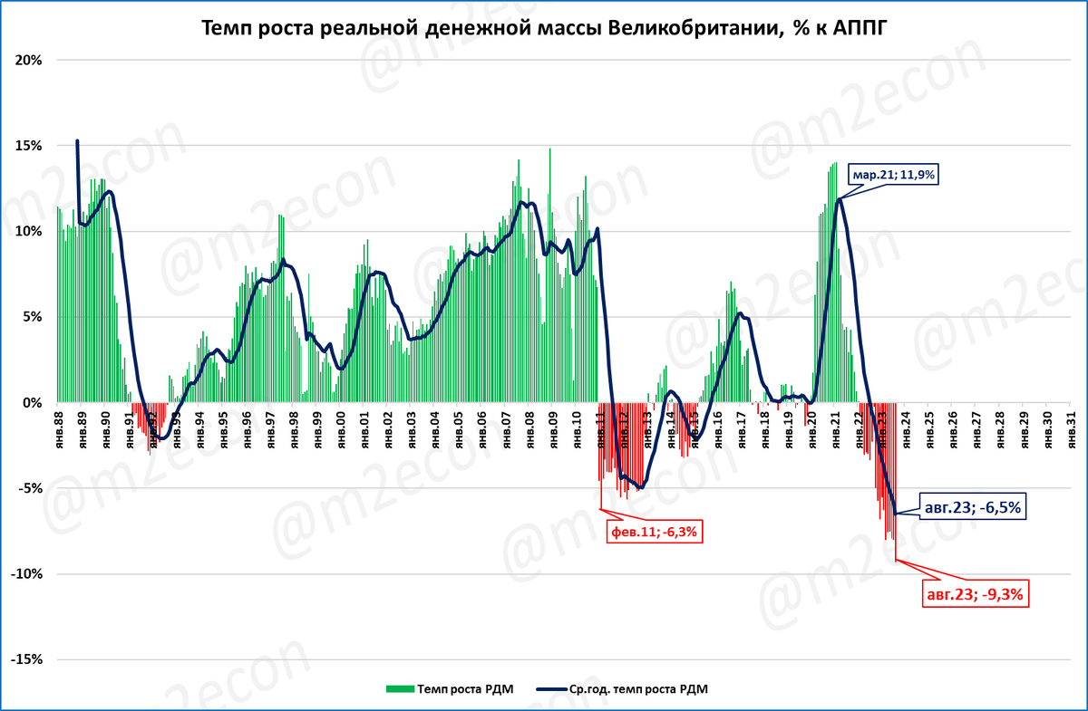 Это - максимальное падение реальной денежной массы (РДМ) как минимум с 1988 года.