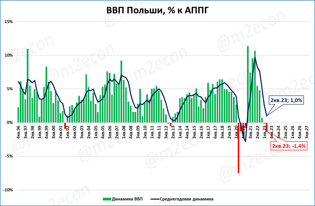 Но с 1 кв. 2023 года ВВП Польши начал падать.