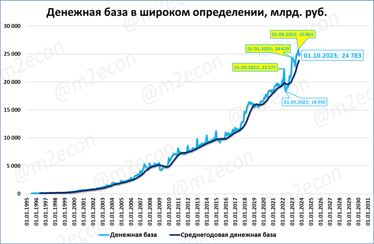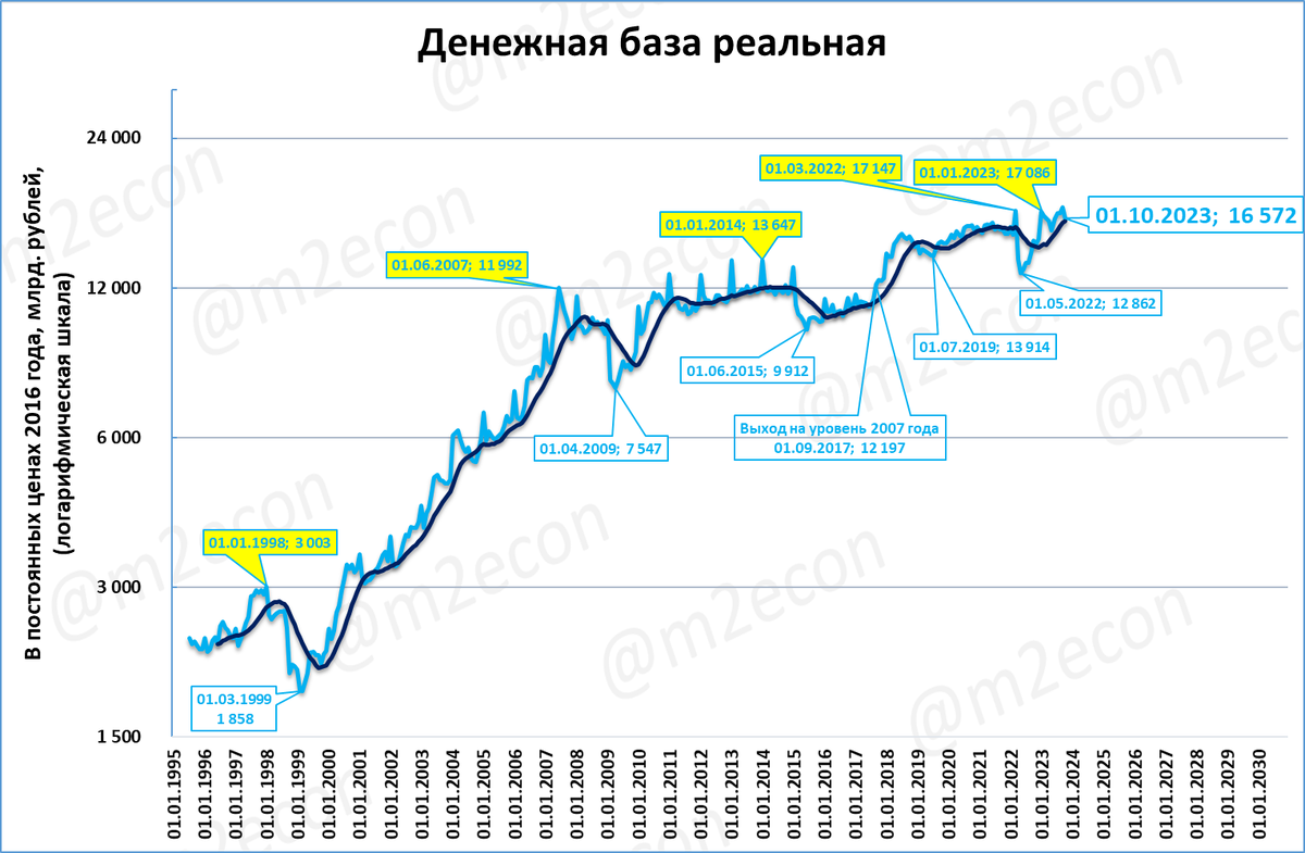 Реальная денежная база сейчас меньше, чем в марте 2022 года.