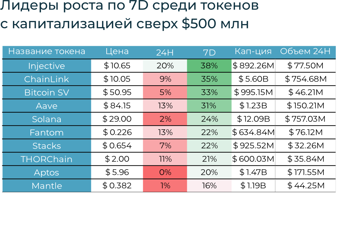 Общая капитализация криптовалютного рынка увеличилась на 10,2% – до $1,144 трлн. Лидерами роста были SOL (+24,1%), Aave (+31,3%), Polygon (+15,2%). Цена ETH выросла на 7,9%, вопреки спекуляциям вокруг потенциальных продаж от Виталика Бутерина. Позднее он отметил, что не продавал ETH с 2018 года.