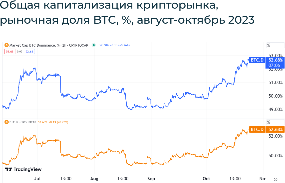 Спекуляции вокруг одобрения спотового BTC-ETF поддержали рынок, хоть и позднее были опровергнуты. JP Morgan заявили, что ожидают одобрения от SEC в течении ближайших месяцев. Также регуляторы ЕС и США похоже смирились с принятием криптовалюты, и форсированно внедряют регуляции для криптокомпаний. Это касается как сотрудничества с налоговыми властями, так и лицензированием криптокомпаний.