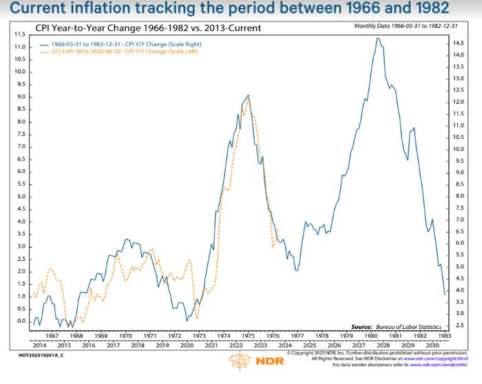 Смотрите, осенью я постил "сравняшки" американской инфляции того периода с 1974-1984 годом