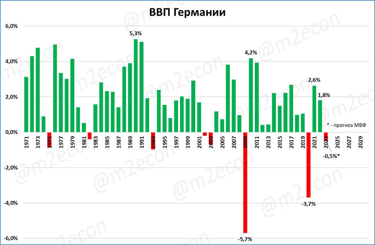 Напомним, что по прогнозу МВФ ВВП Германии в 2023 году упадёт на 0,5%