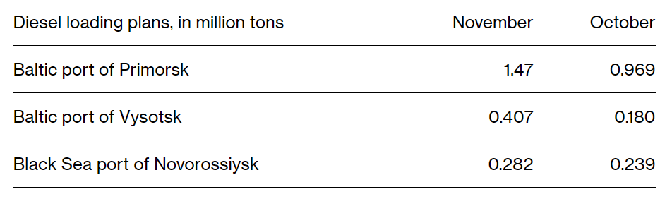 Российская Федерация планирует увеличить поставки дизельного топлива со своих основных западных портов более чем наполовину в следующем месяце.