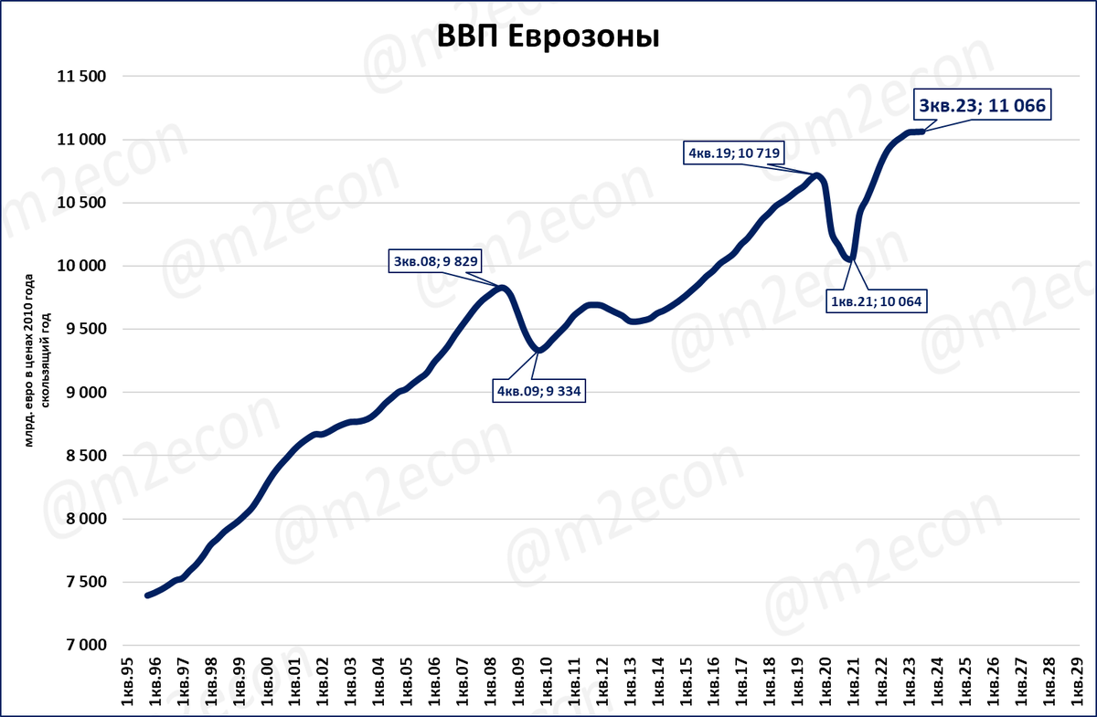 Но уже сейчас очевидно, что в последние два квартала ВВП Еврозоны практически перестал расти.