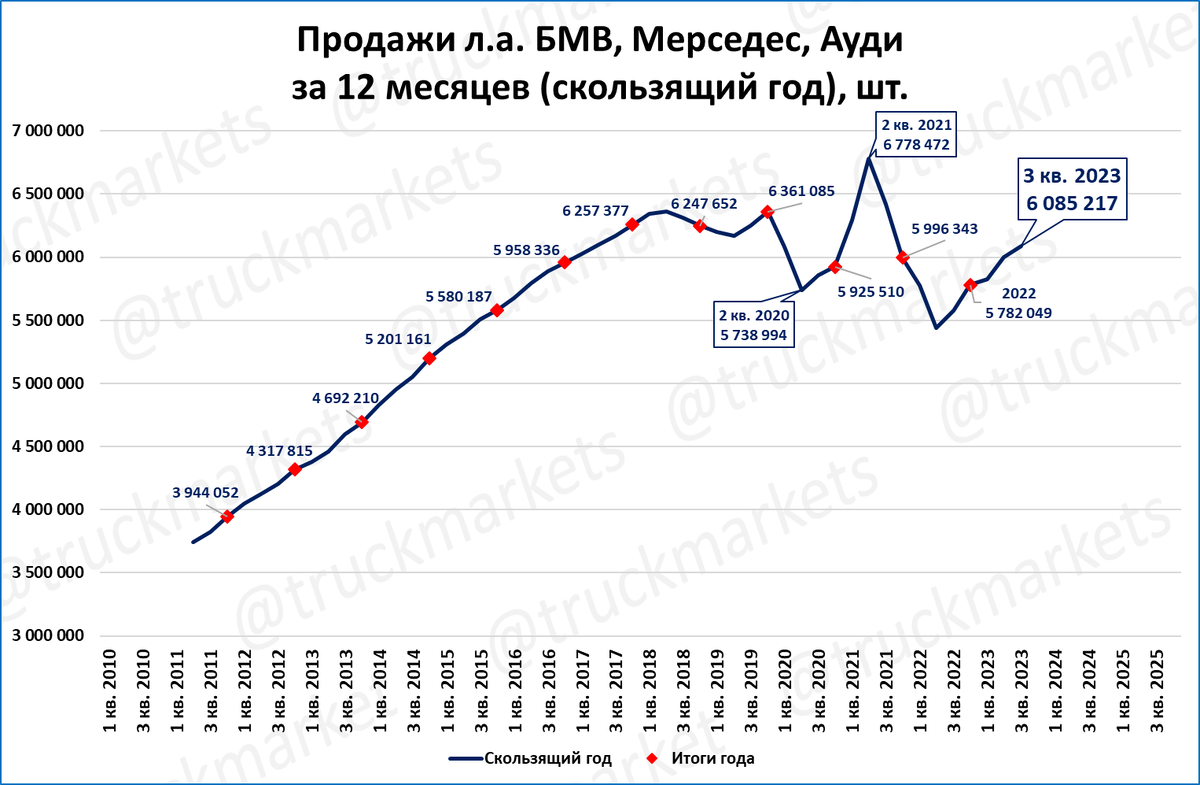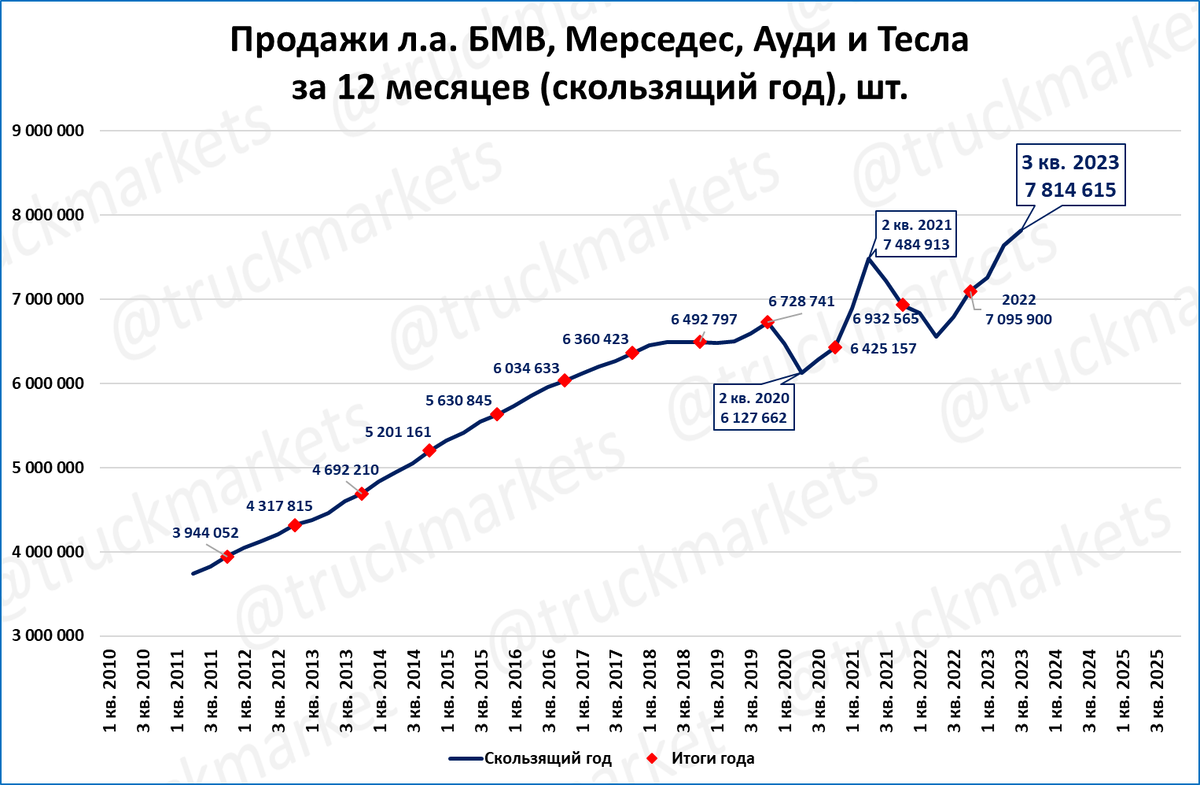 За последние 4 квартала (скользящий год) было продано 7,8 млн. премиум-авто