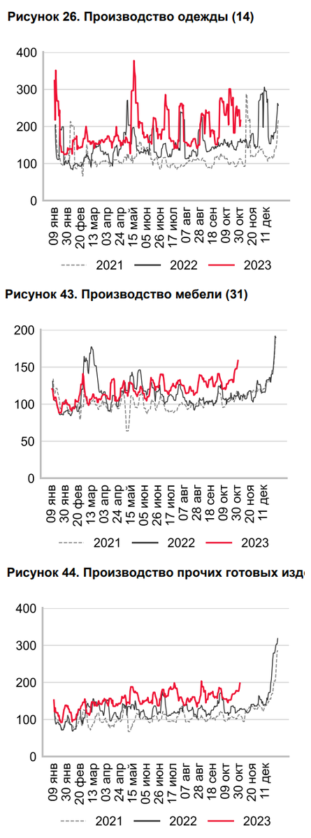 Наблюдается существенный прирост в производстве одежды и мебели, а также иных готовых изделий.
