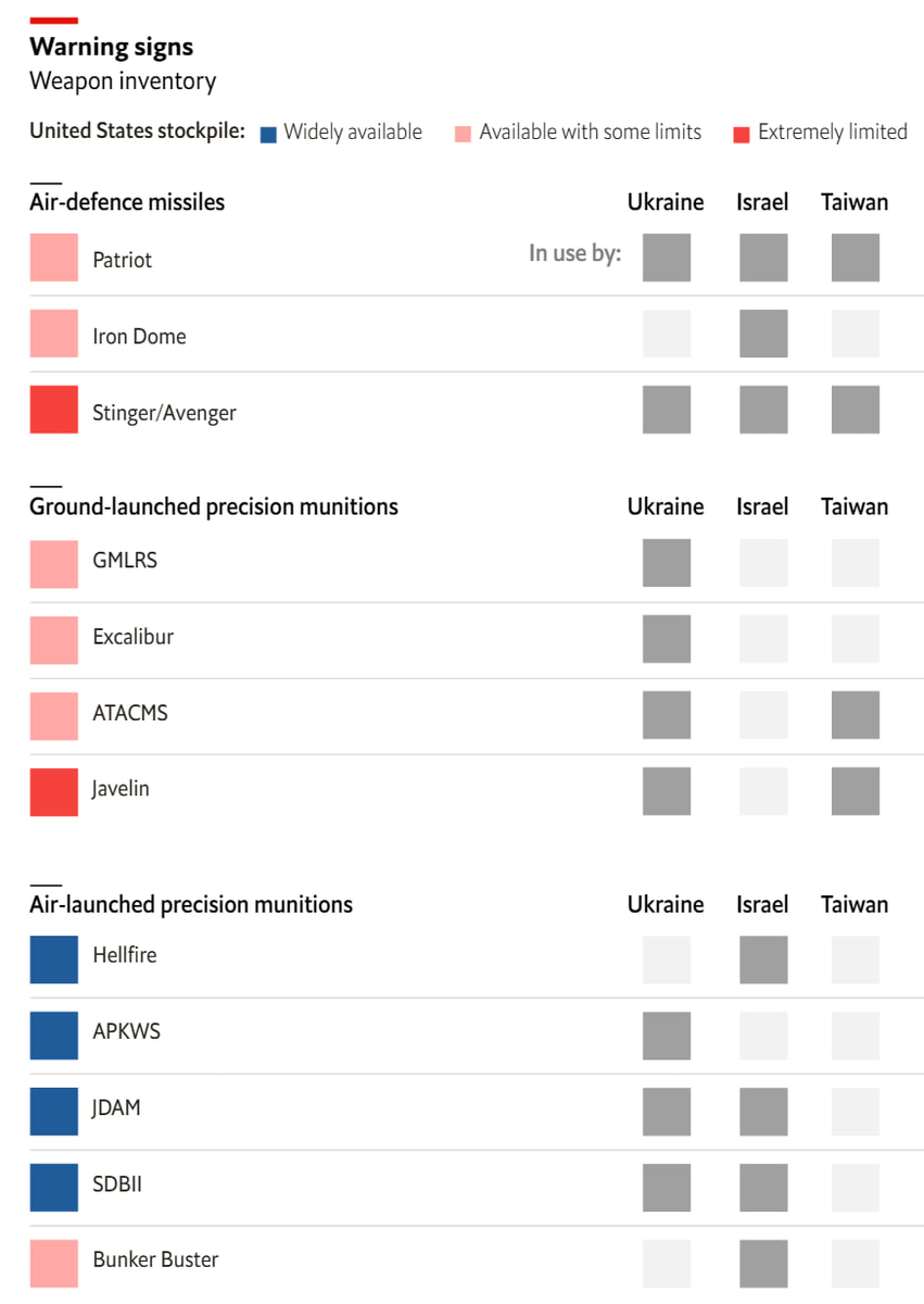Прям на первой полосе задается вопросом - а хватит ли США того или иного оружия, чтобы поддержать своих союзников - Украину, Израиль и... Тайвань.