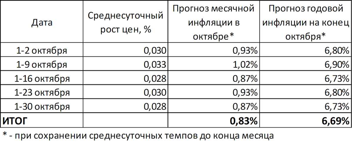 Но средняя инфляция в августе-октябре составил 0,66%.