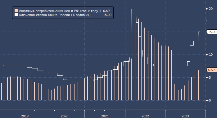 "Решение по ключевой ставке на следующем заседании, в первую очередь, будет зависеть от дальнейшей динамики инфляции, данные по которой с различной степенью детализации на еженедельной основе публикуются Росстатом и Минэкономразвития. Учитывая неравномерную динамику инфляции за последние месяцы, можно ожидать сохранения ключевой ставки (КС) на текущем уровне 15% в случае фиксации до 15 декабря снижения темпов инфляции, т.к., вероятнее всего, Банк России будет ориентироваться на более долгосрочные тренды, и ее повышения на 0,5 - 1 п.п. в случае роста инфляционных показателей", - пишет аналитик.