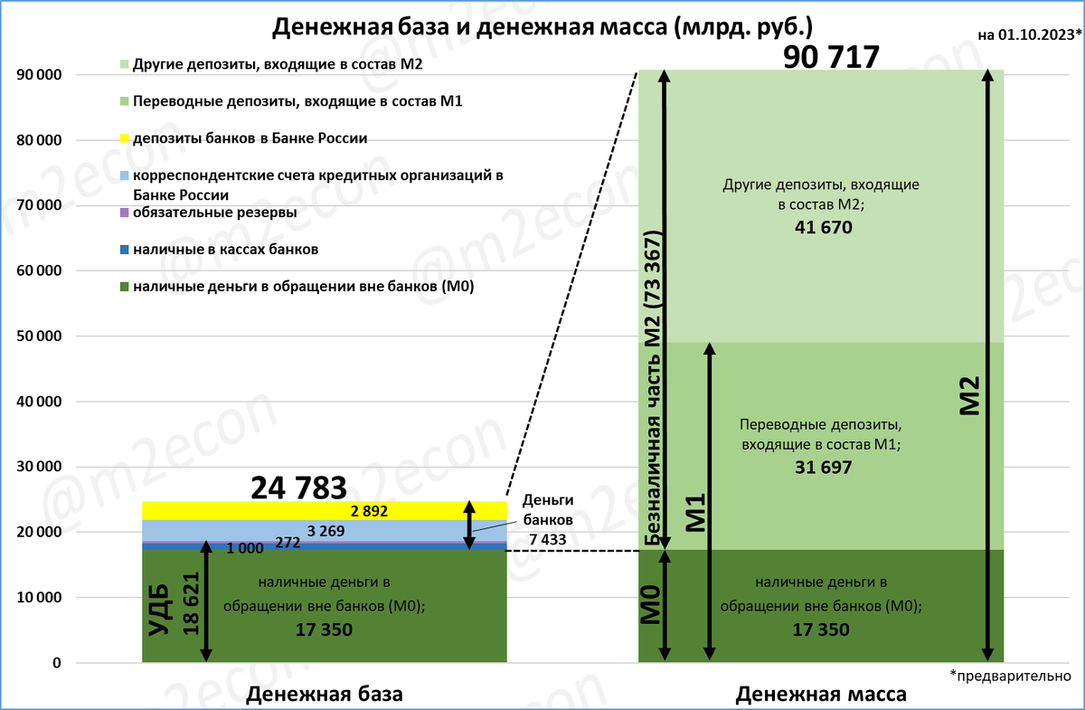 Напомню, что мы ежемесячно приводим текущие значения компонентов денежной базы и денежной массы в виде графика.