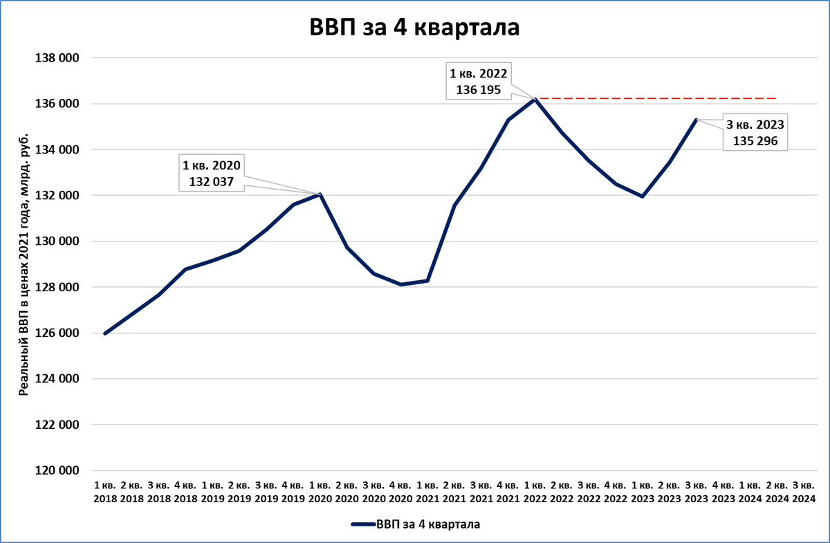 ВВП за 4 квартала (скользящий год) пока не вышел на уровень “до СВО”.