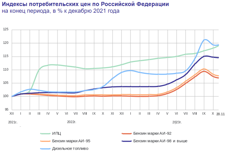 За неделю с 14 по 20 ноября 2023 г. на потребительском рынке инфляция замедлилась до 0,20%.